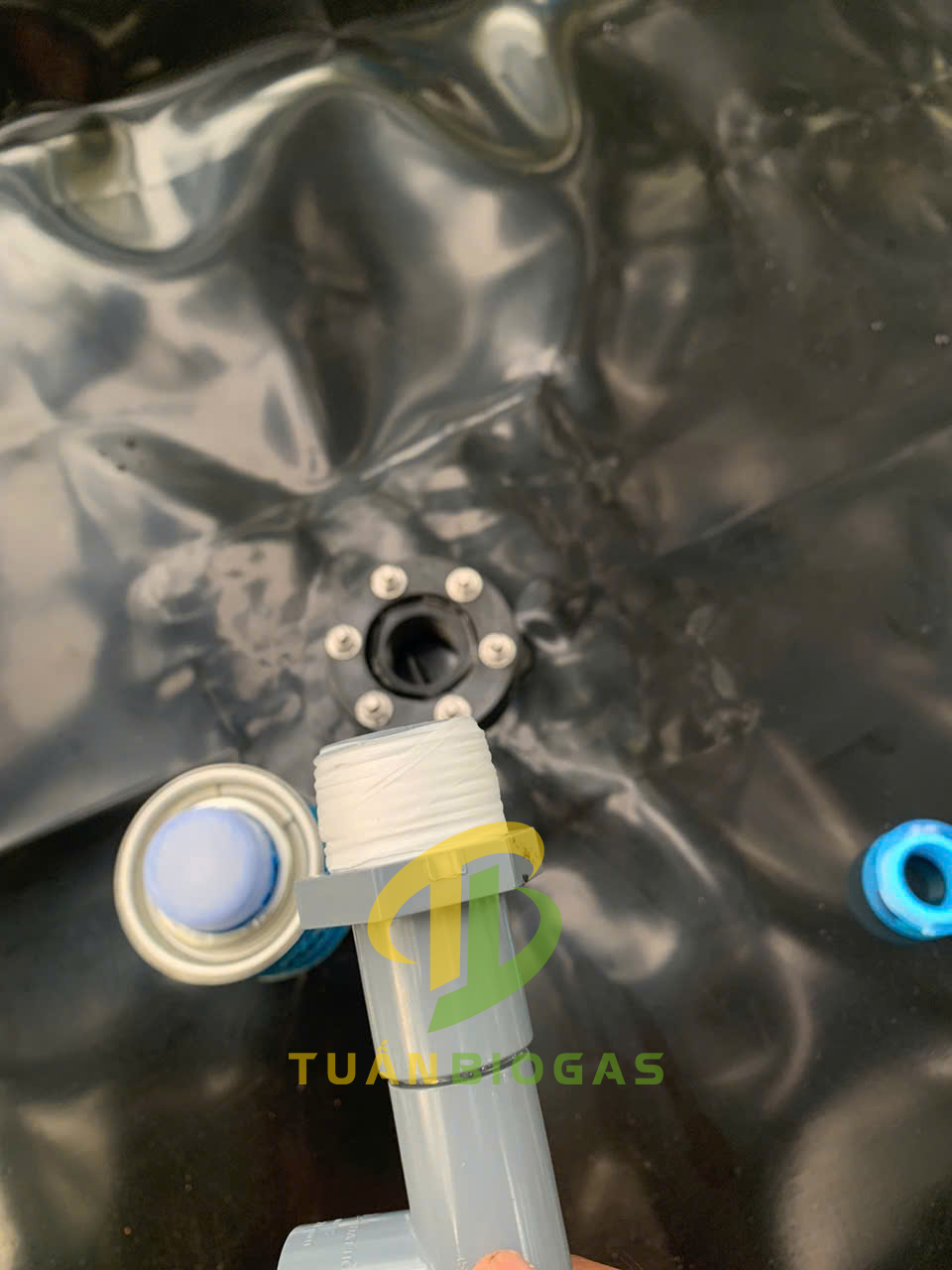 Lắp đặt túi biogas và phụ kiện: Đấu nối ống dẫn, van xả khí, kiểm tra độ kín.