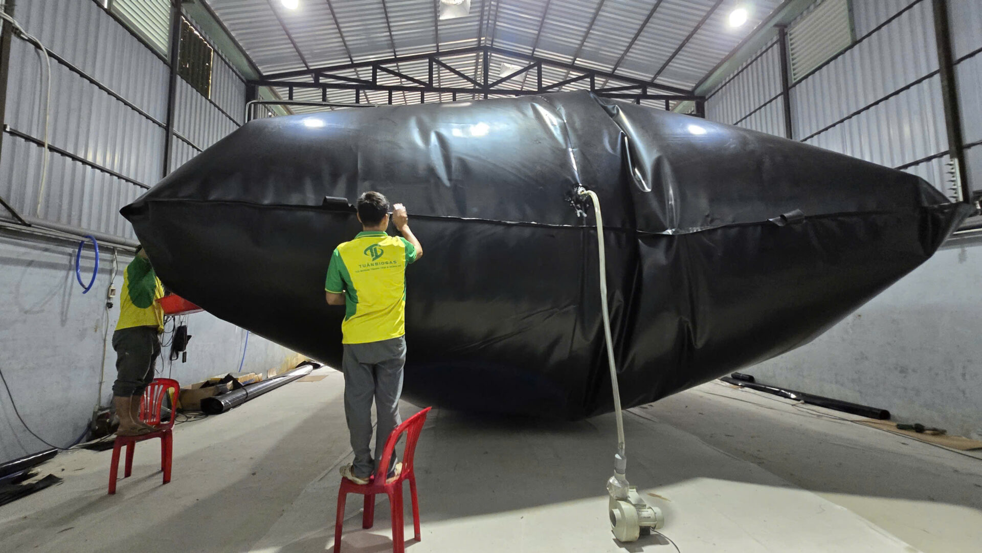 Đó là lý do túi trữ khí biogas ra đời – giải pháp tích trữ thêm lượng khí đốt, giúp bà con chủ động hơn trong sinh hoạt và tránh tình trạng “khí yếu” khi đun nấu liên tục.