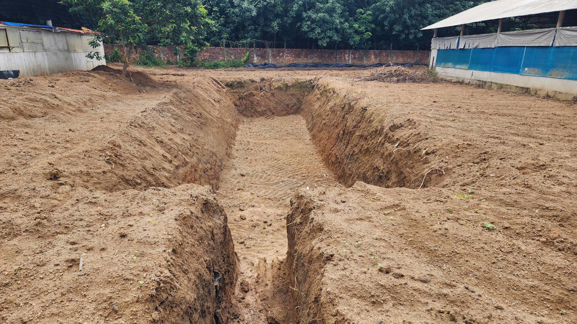 - Đào hố theo kích thước công ty gửi — hố cần nhỏ hơn túi để túi có phần dư.