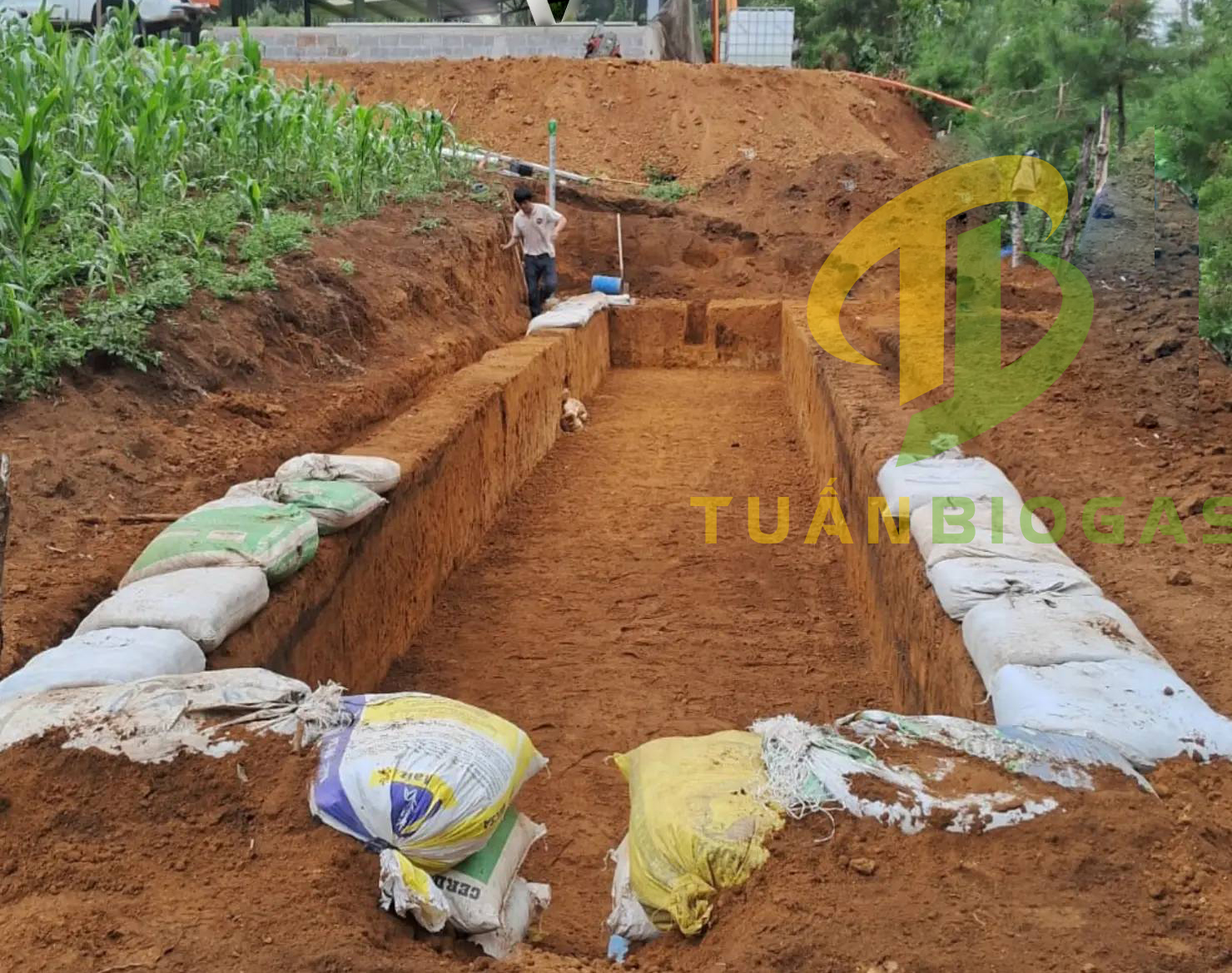 Đào hố đất theo tiêu chuẩn kỹ thuật Tuấn Biogas gửi cho bà con.